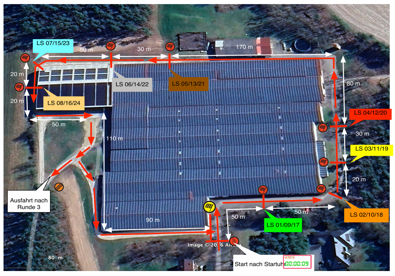 251 Zeiten (Lichtschranke + Schlauch) aufgeteilt in Start-Ziel Zeiten, Ziel-Ziel Zeiten. Es werden geheime und angekündigte Prüfungen gefahren.
