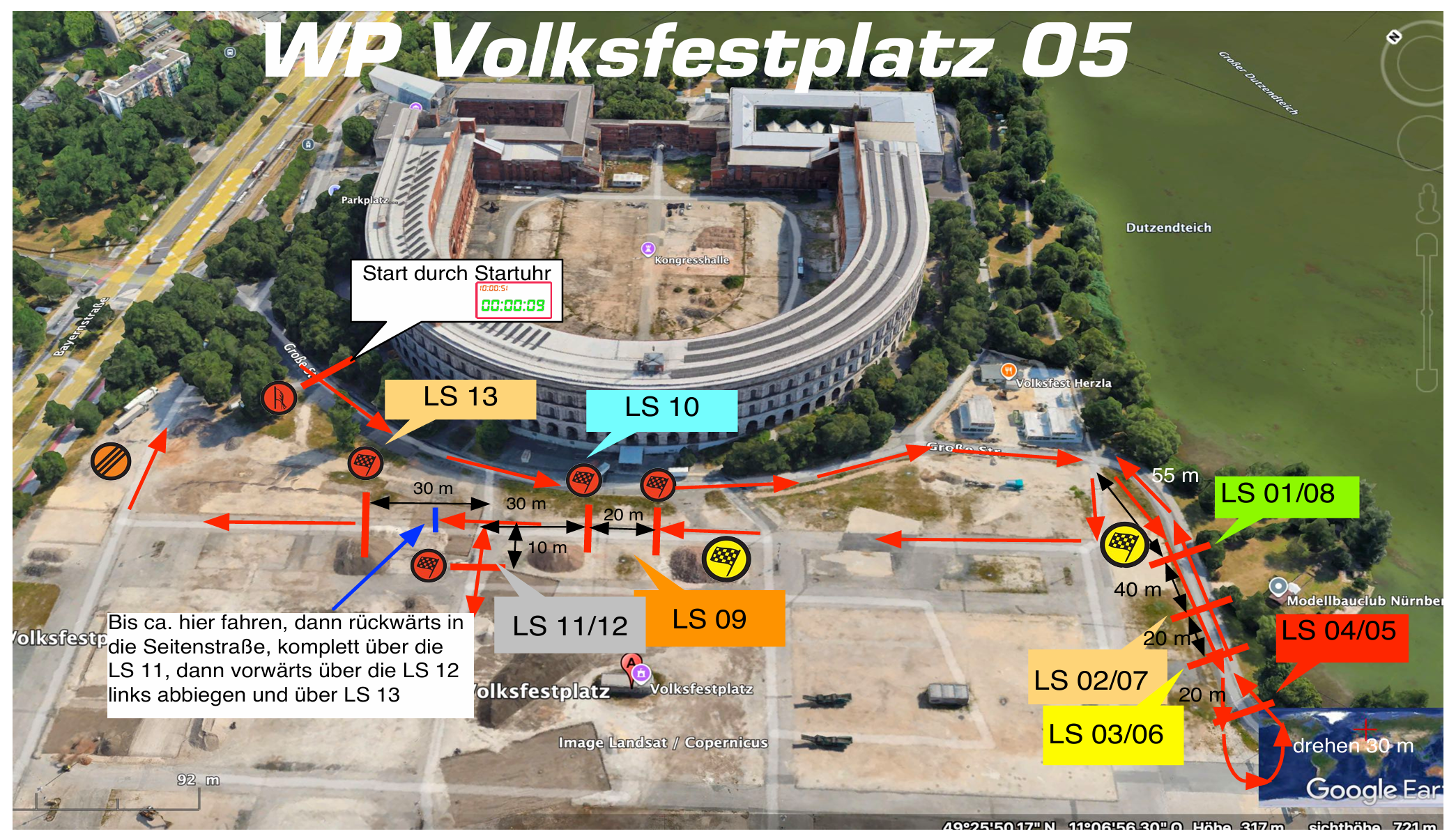 Start + WP’s Norisring | Kongresshalle | Transfer (Roadbook) mit Durchgangskontrollen |Diverse WP’s an der Strecke